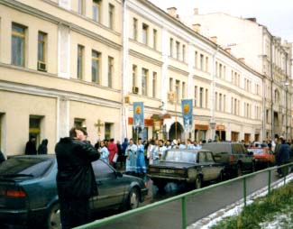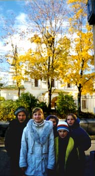 Интересные, удивительные встречи сопровождали нас во время наших прогулок по Москве. Довольно неожиданно, рядом с никольской улицей, у стен древнего Богоявленского монастыря, мы стали свидетелями Крестного хода.
